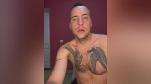 normanmash - Video of a nude woman with fair skin, brown hair, and small breasts, wearing a lacy bra. She spreads her legs, exposing her shaved vulva, in a pink room.